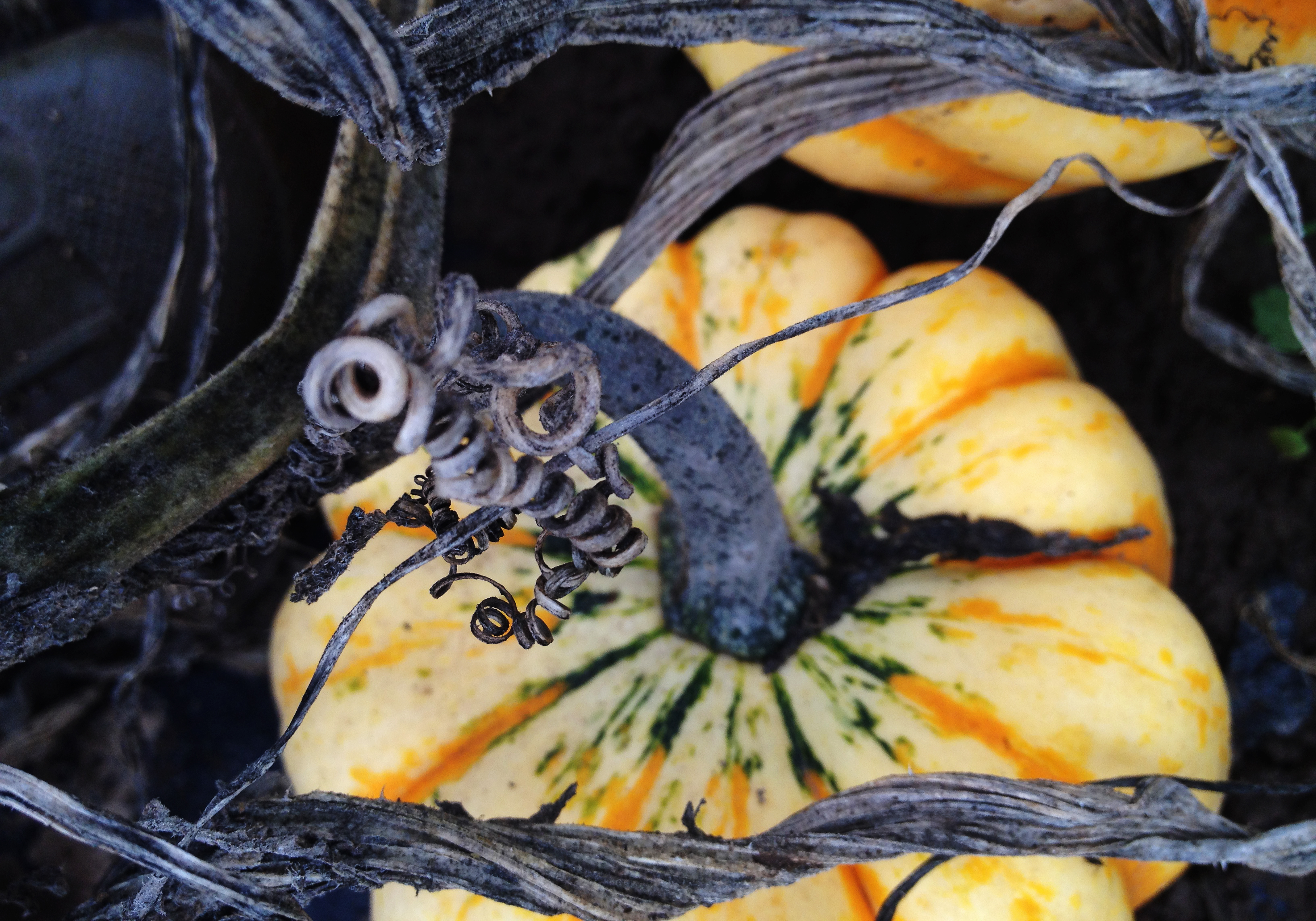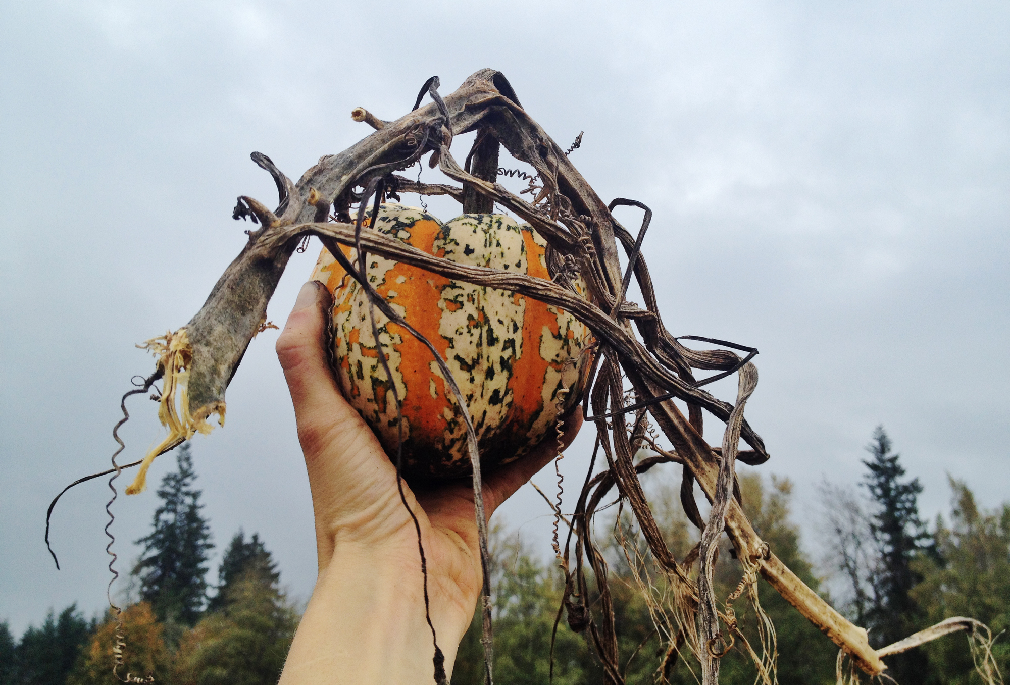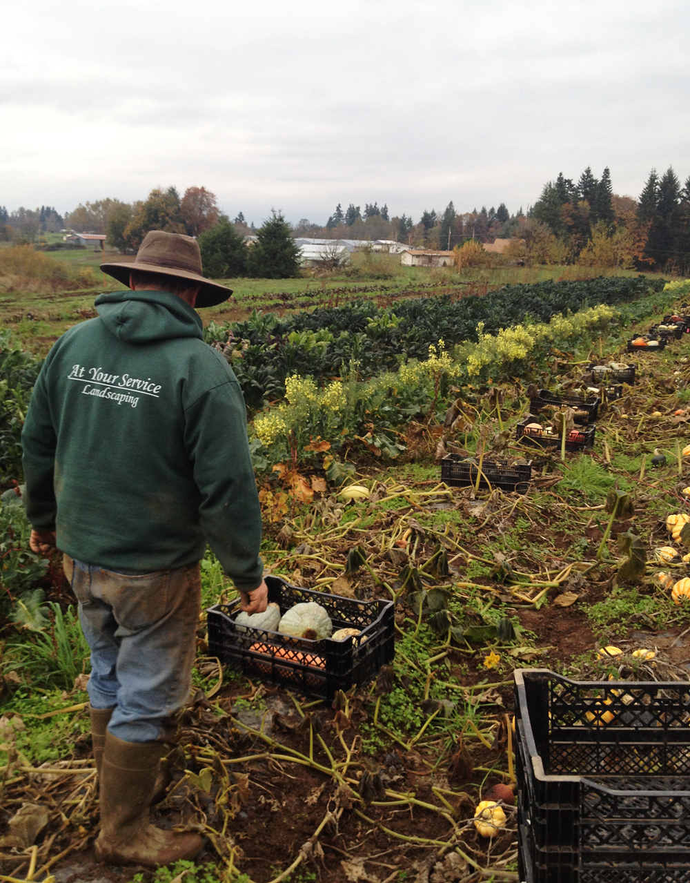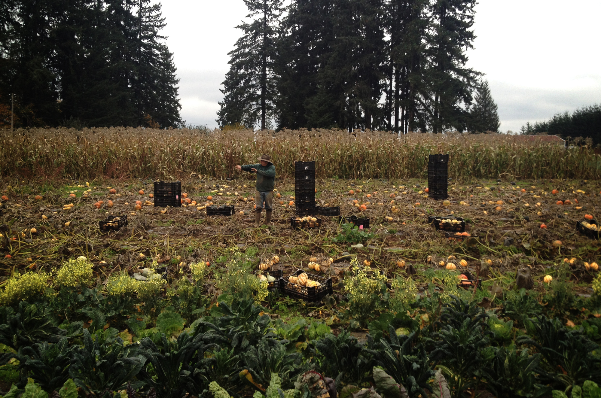 Meanwhile, we’d like to show some photos (taken today) of the beginning of our winter squash harvest. It’s getting cold, and these beauties need to come off the field before the frost gets them. Fall crops are heavy work, but so rewarding. The colors, shapes and textures dotting the field right now are incredibly pleasing to the eyes, and it’s a proud and awe-filled time as we gather up the crop that we’ve watched grow for months.
